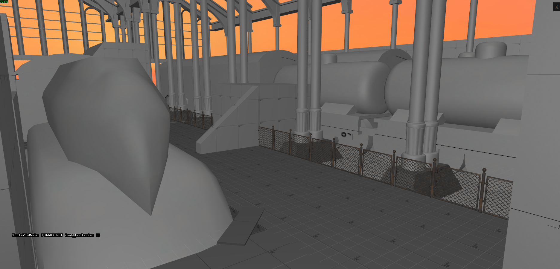 Iteration of primary shapes for the 2 spawns, mid area, and map roof. Simple shapes WIP.