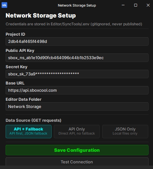 Persistent cloud storage, server-side endpoints, and an editor sync tool for s&box games — powered by the sboxcool.com API.