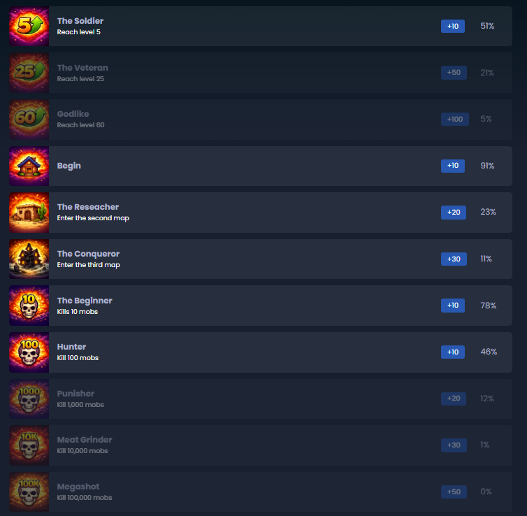 Many achievements have now been activated, so you can unlock them and show off to other players. Unfortunately, there are still some achievements that can’t be completed yet, mostly the ones related to bosses, but they will be activated soon.