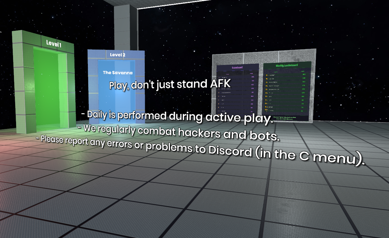 We're committed to active gameplay and negotiations with hackers. We already have some interesting ideas planned, balance improvements, and new maps. We made an important change, added AntiAFK and improved Daily, if there are any problems with the first task (time) and the secodn task, especially for those who played at 12 AM (0:00) Moscow time, let us know!