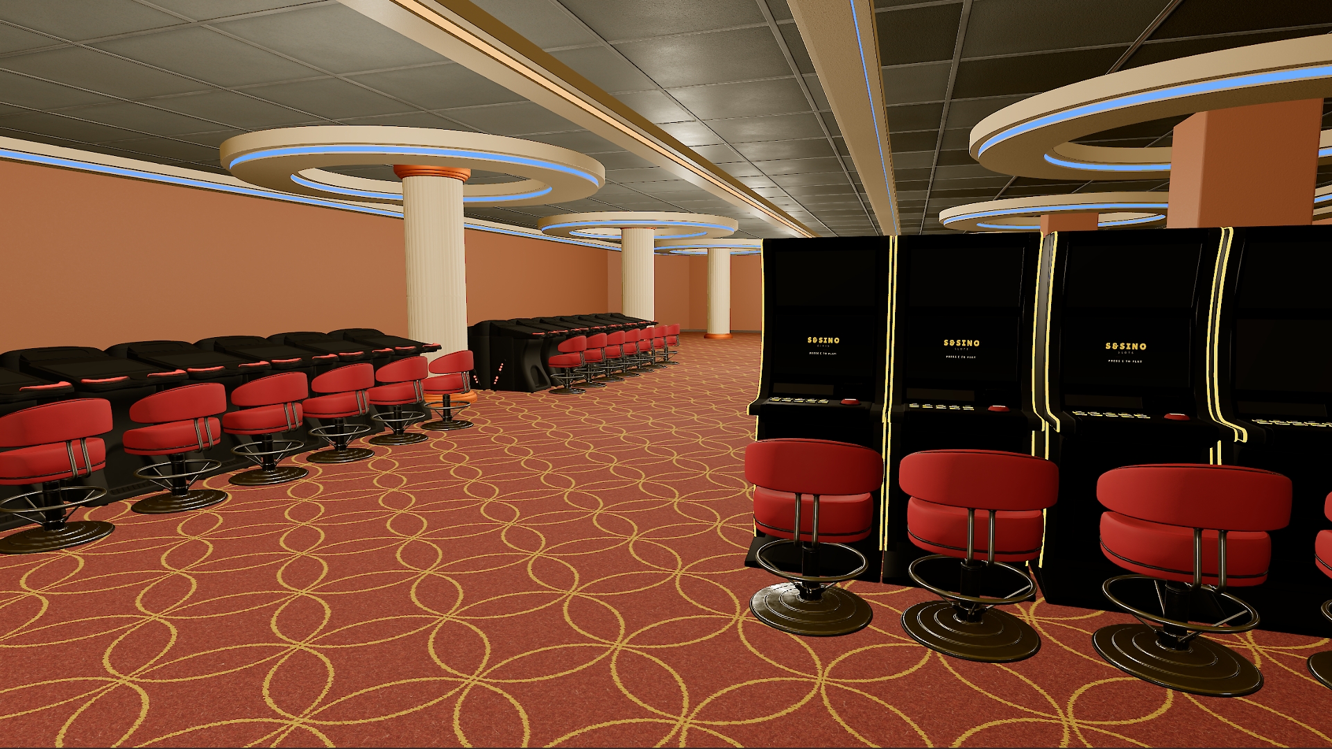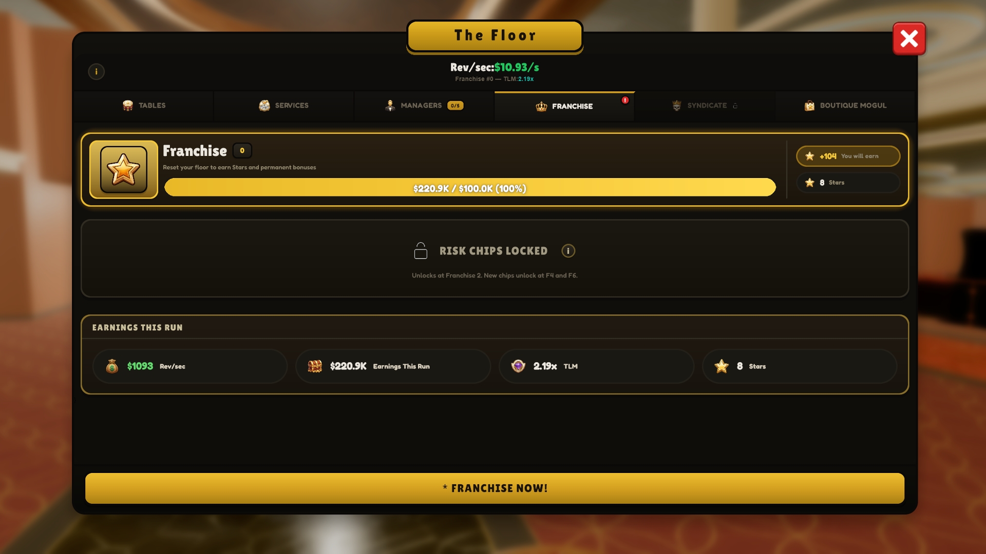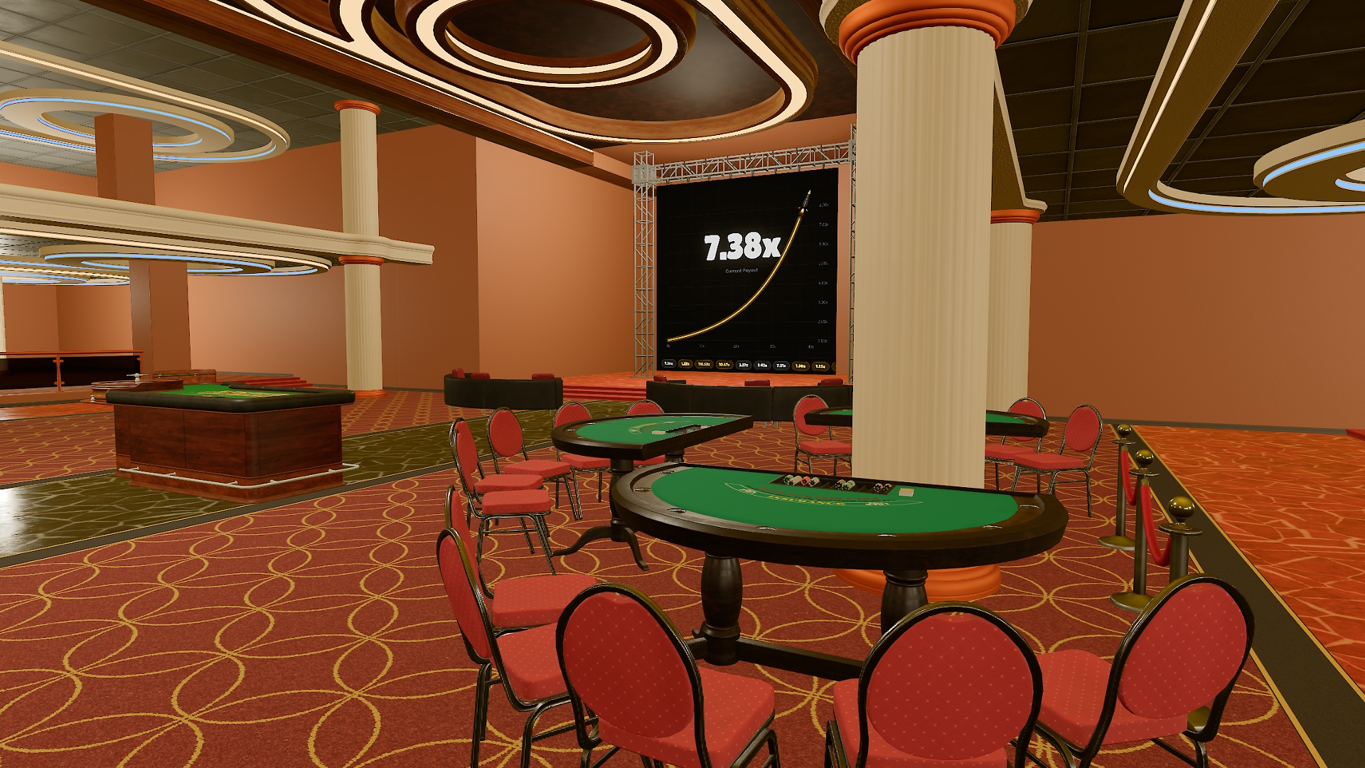 13 casino games. Multiplayer tables. An idle management layer. Prestige system with upgrades.