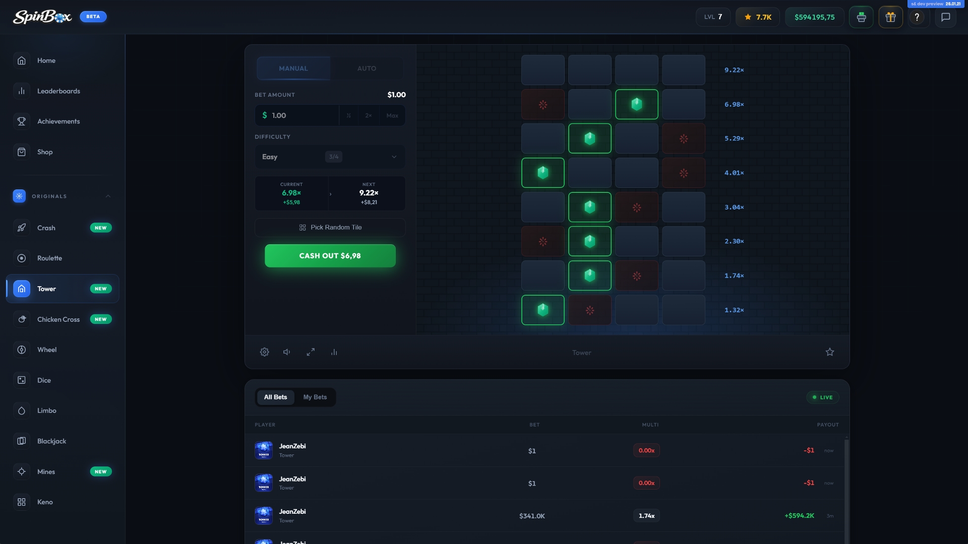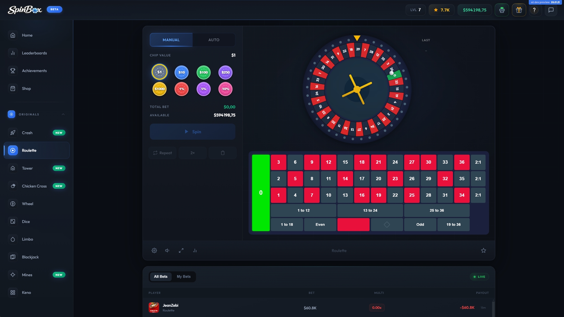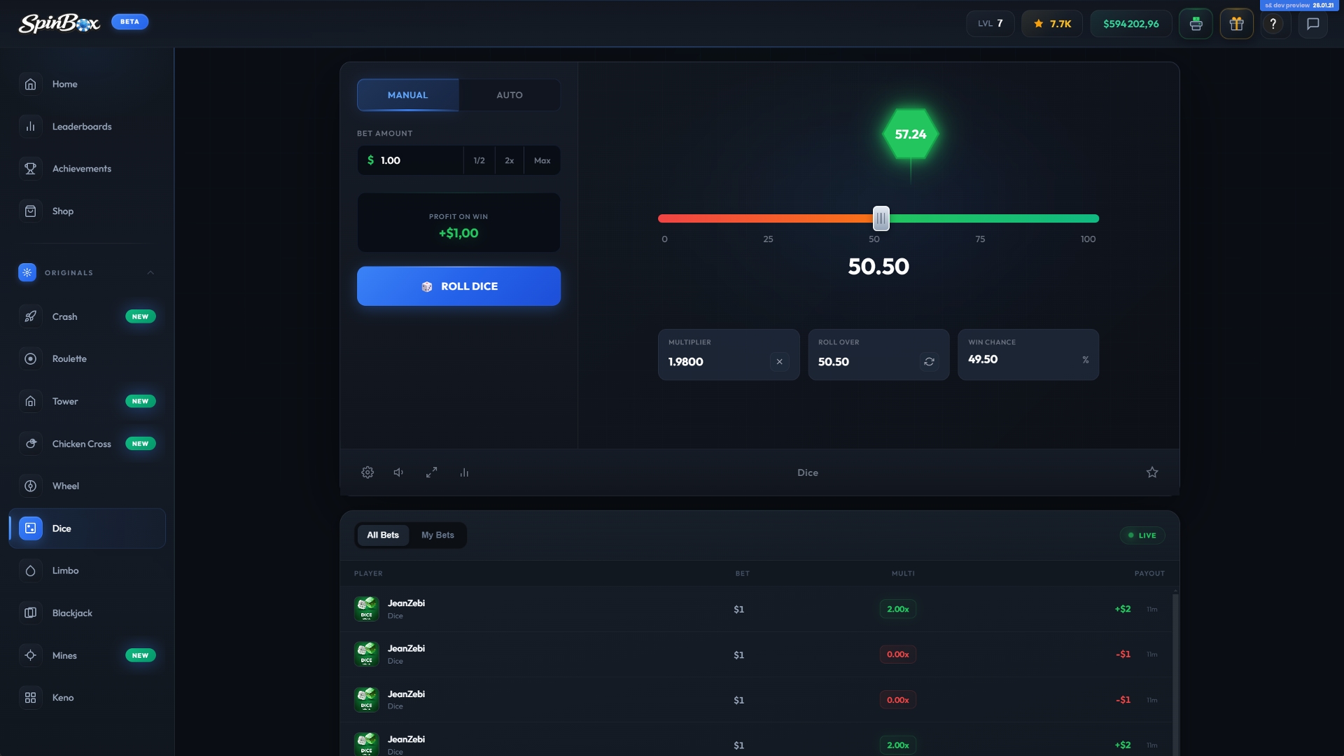 Spinbox is a casino platform featuring 10+ games, designed for both quick sessions and extended play. It offers a balanced mix of classic casino experiences and modern, fast-paced games, with more content actively in development and additional games coming soon.