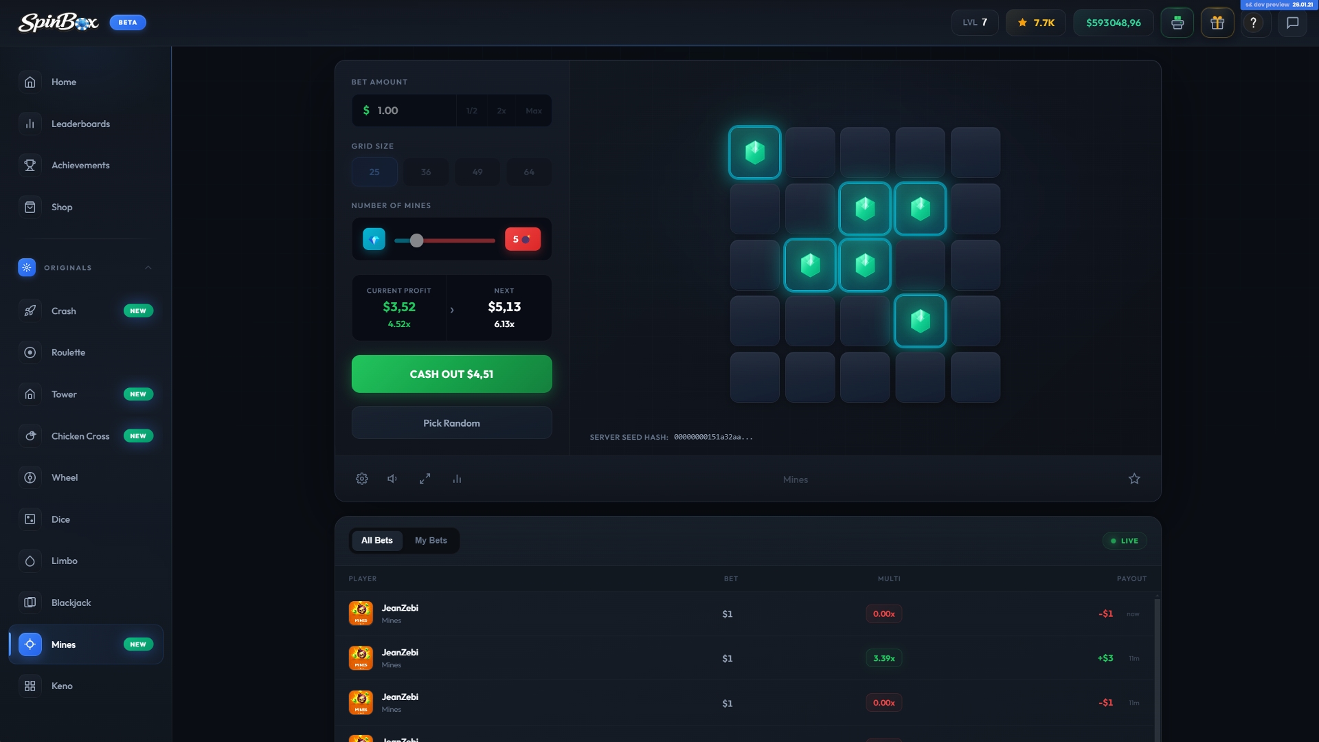 All games use provably fair RNG no tricks, just fair play.