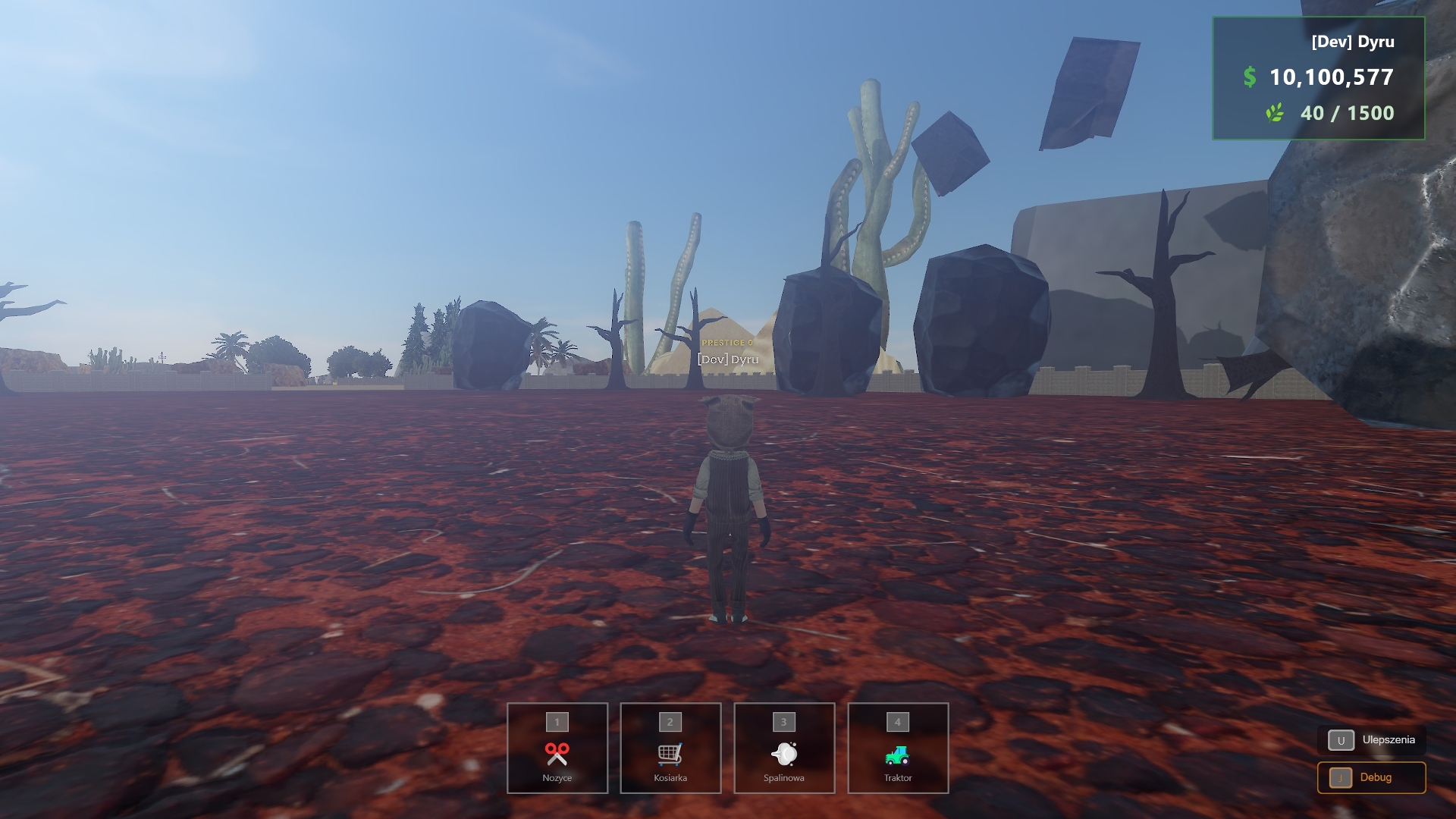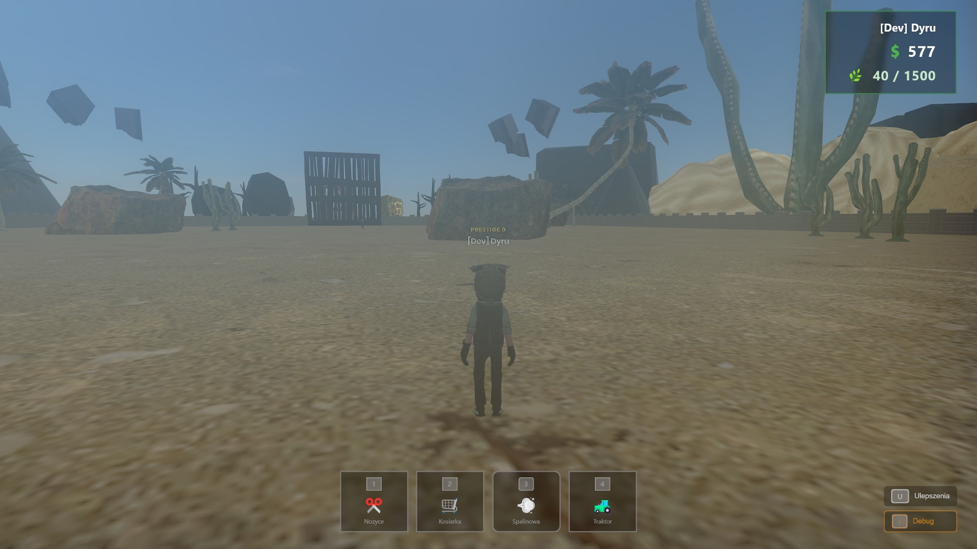 - Prestige — reset everything for a permanent sell bonus, cost doubles each time