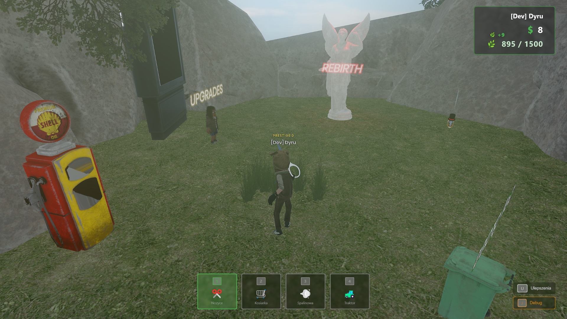 Cut grass, sell it, buy upgrades, unlock areas, prestige, repeat. Simple loop, hard to put down.