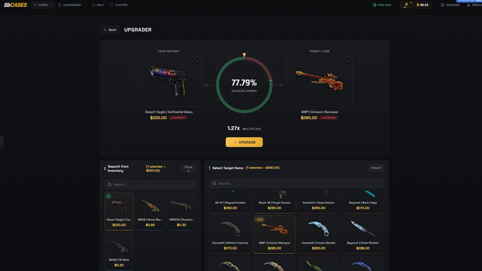 that, there's an upgrader where you throw in lower-value skins and gamble for