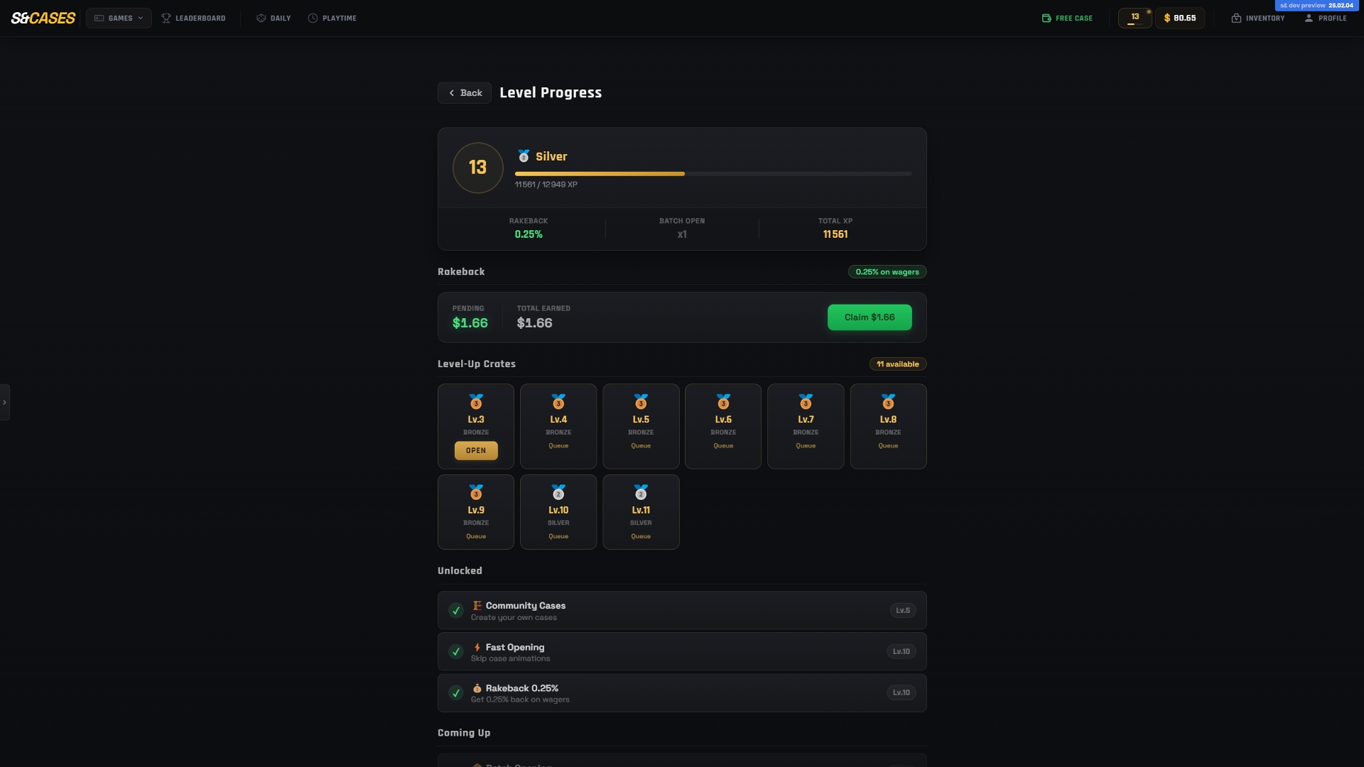 There's a 100-level progression system tied to XP you earn from opening cases.