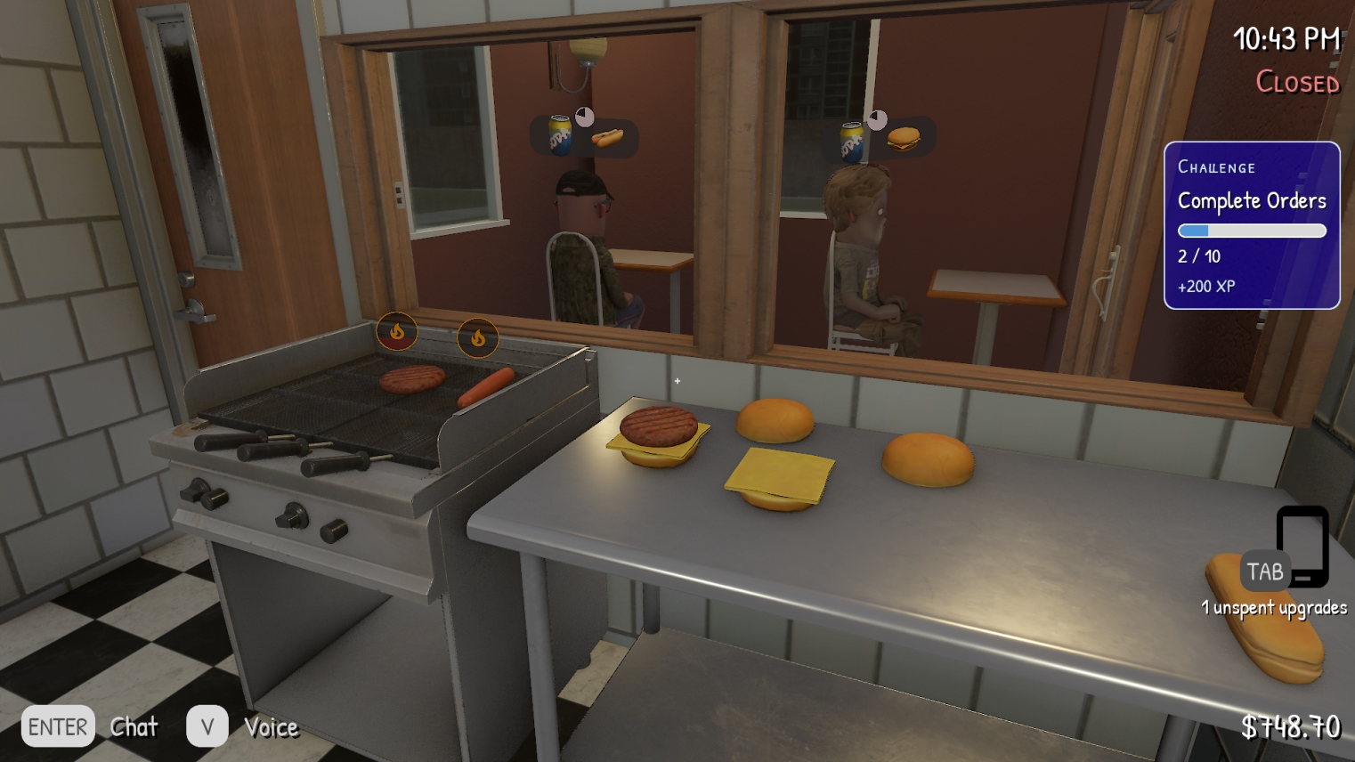 Build your dream restaurant from the ground up! Design your space, fire up the grill, and serve hungry customers in this multiplayer restaurant sim. Whether you're flipping burgers solo or managing the dinner rush with friends, every shift is yours to master.