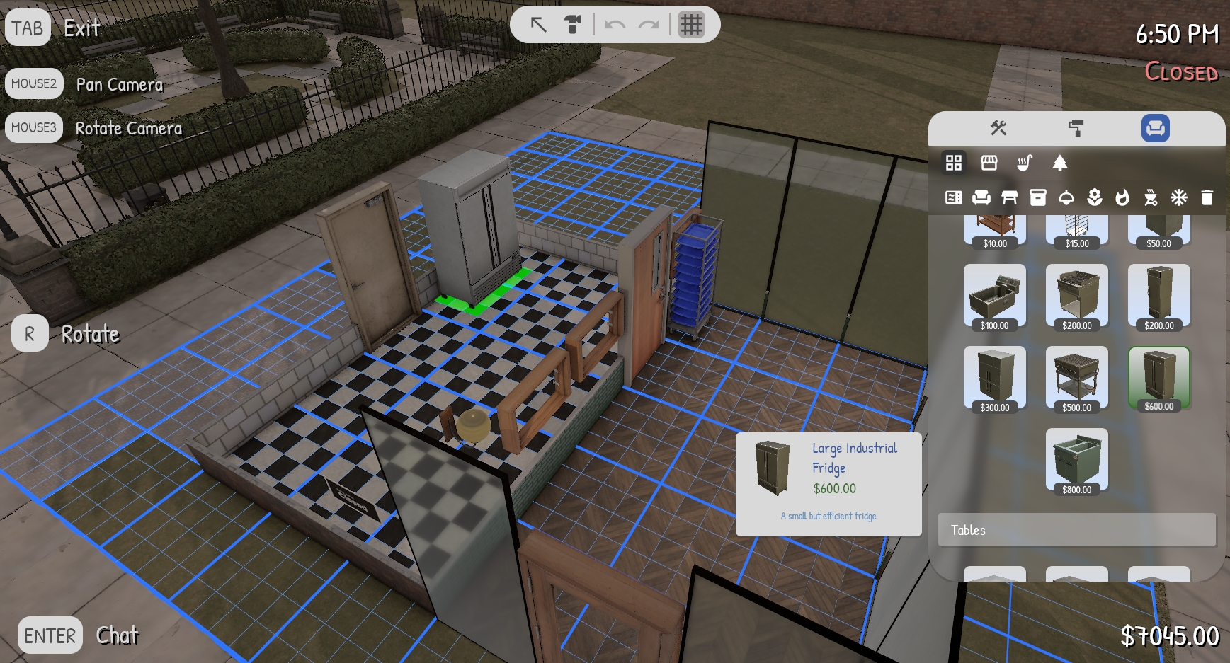 Enter build mode to customise your restaurant as you desire. Place grills, tables, fridges, booths, and more across a flexible grid system. Swap out the flooring, walls, and arrange the furniture until every detail is exactly how you want it. Your restaurant, your way.