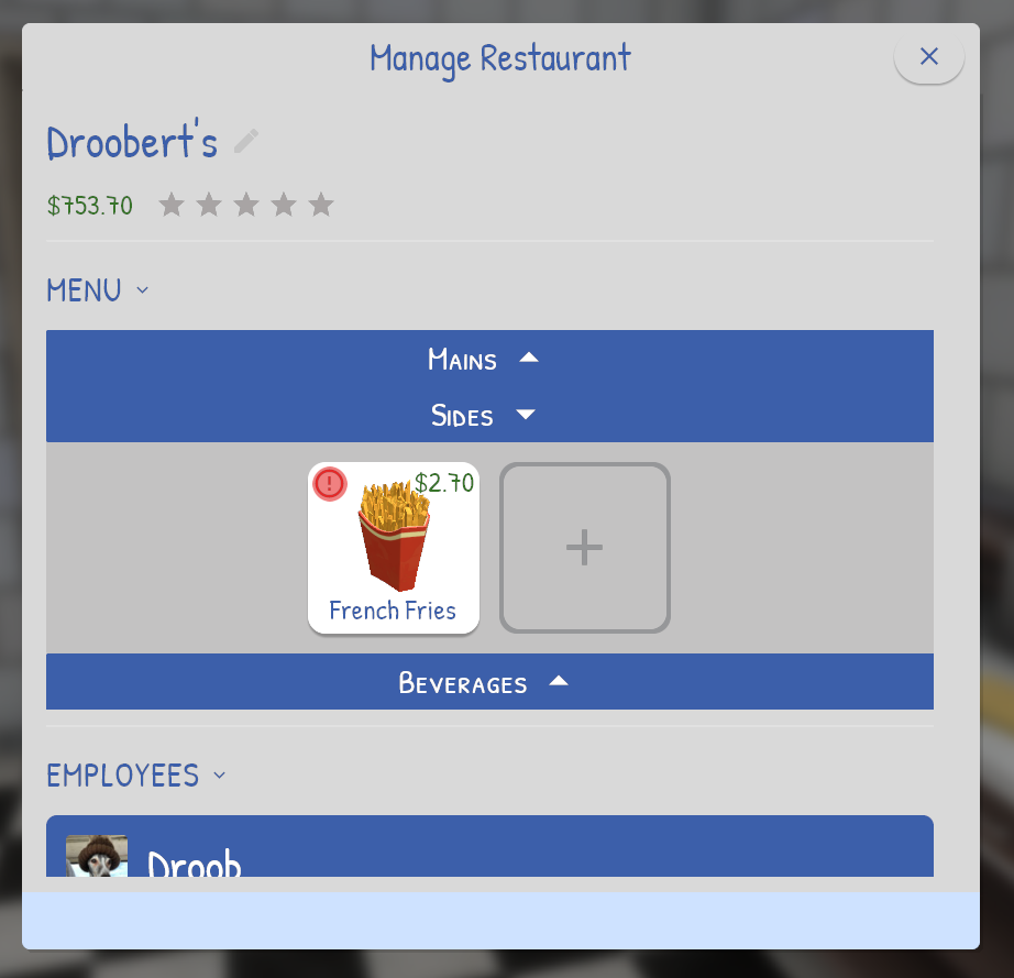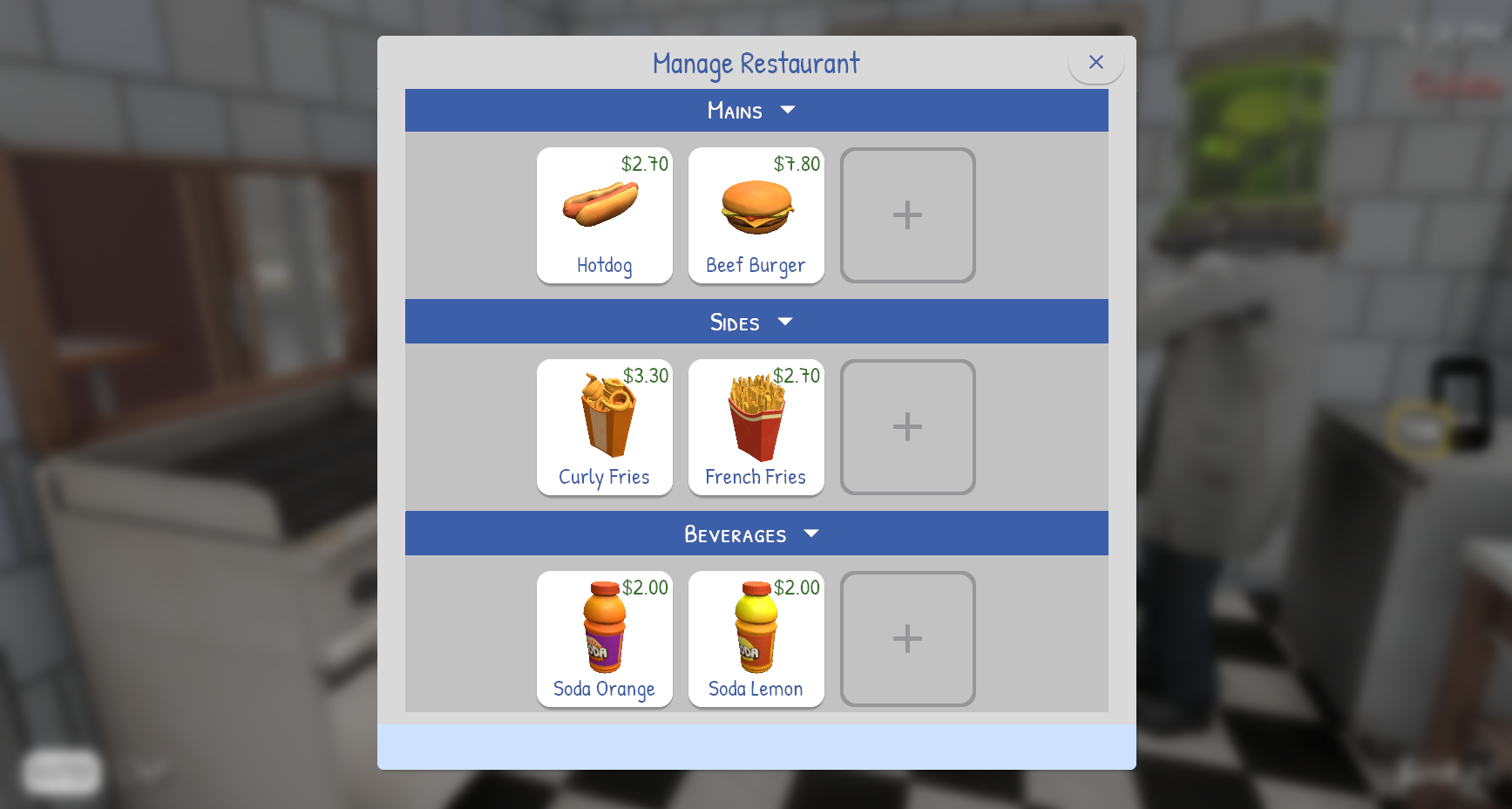 Once you have completed the tutorial (which you can now skip via the phone), you are able to hire helpers & managers to assist you with running your restaurant. You can do this from the new Player application on the phone. Helpers & managers are then able to interact with appliances, cook meals, and serve customers within the restaurant. Currently the manager has extra permissions to handle the open/closing of the restaurant. But I intend to give them the ability to order stock in the future.