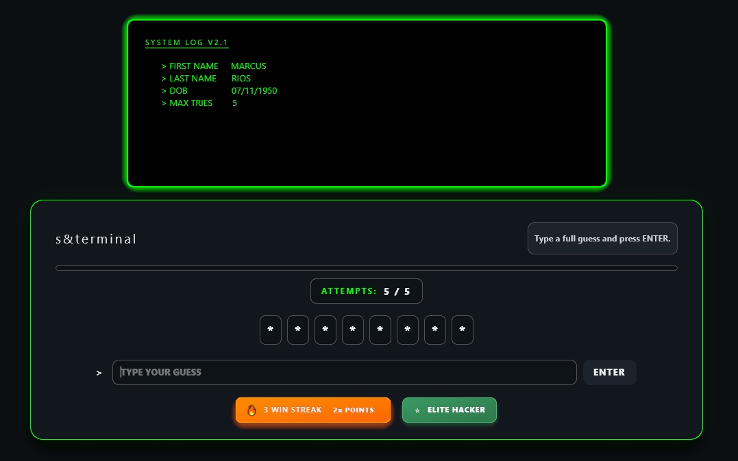 A retro-styled password guessing game inspired by classic terminal puzzles.