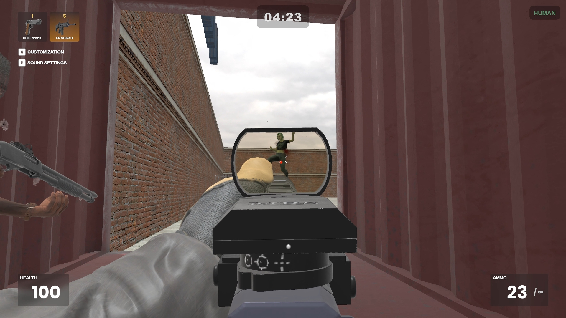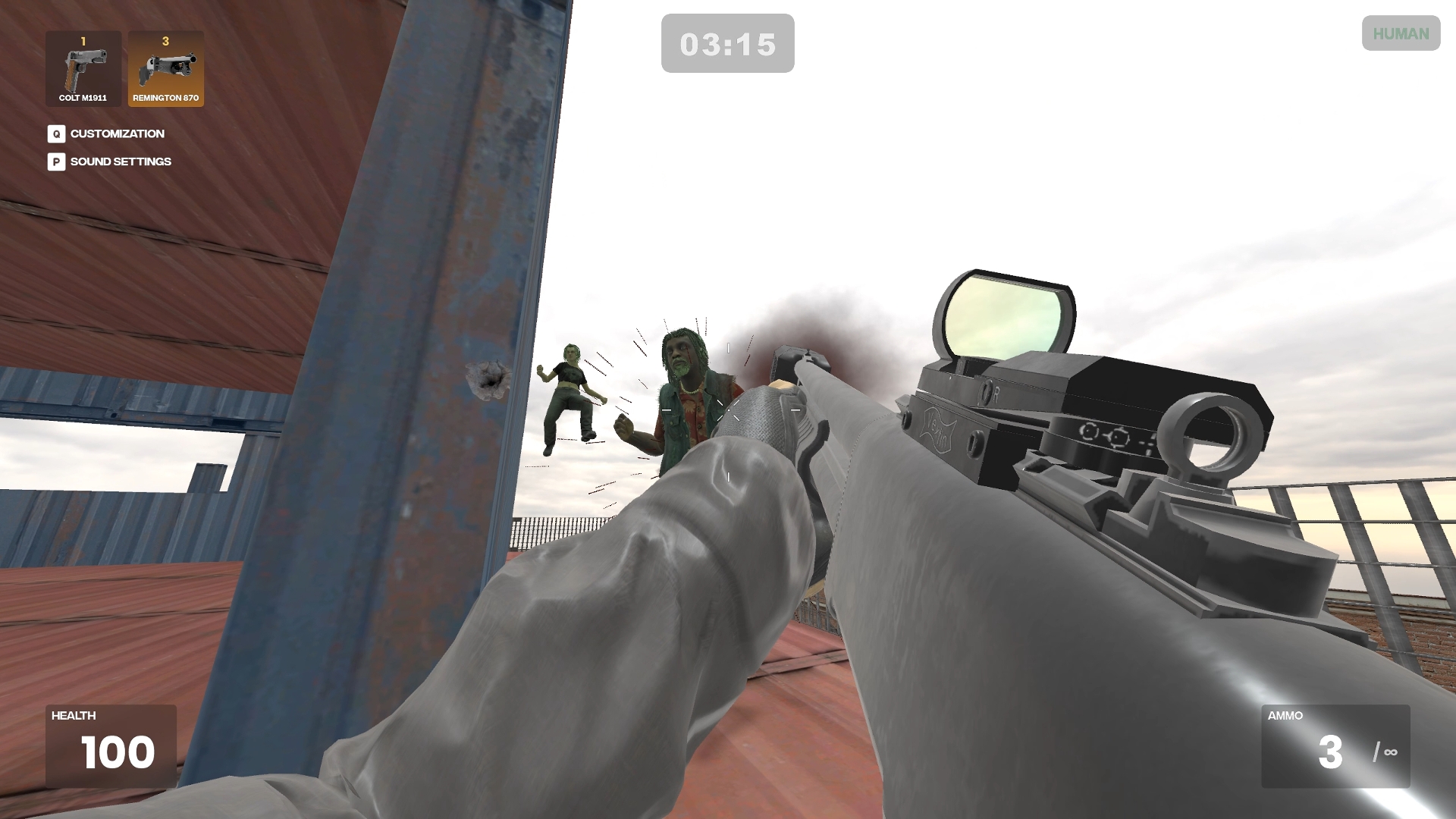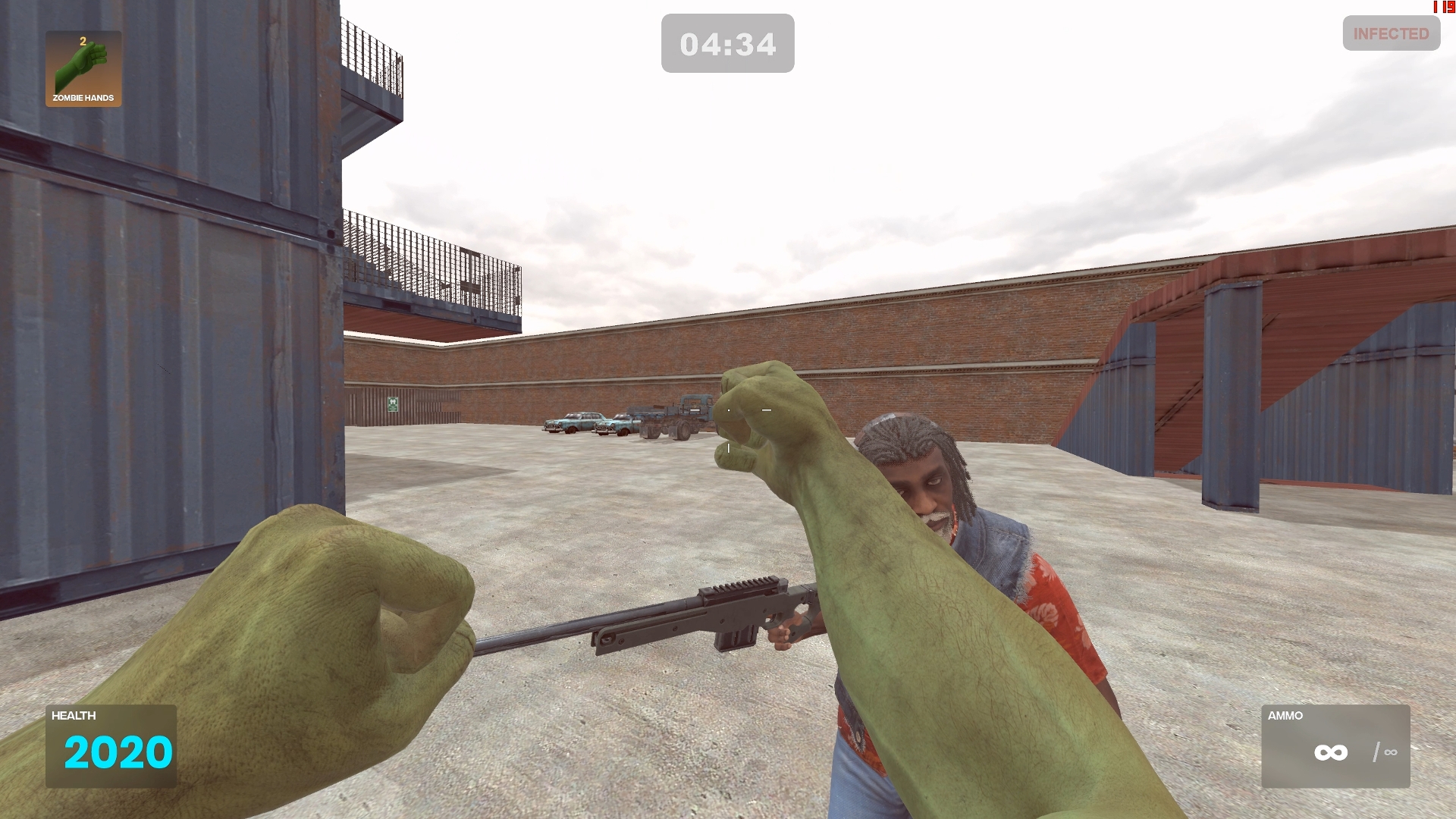 At the start of the round, you have 20 seconds to take position. But trust no one. One of the humans is infected and will turn into a zombie when the timer ends. That infected player might be standing right next to you.
