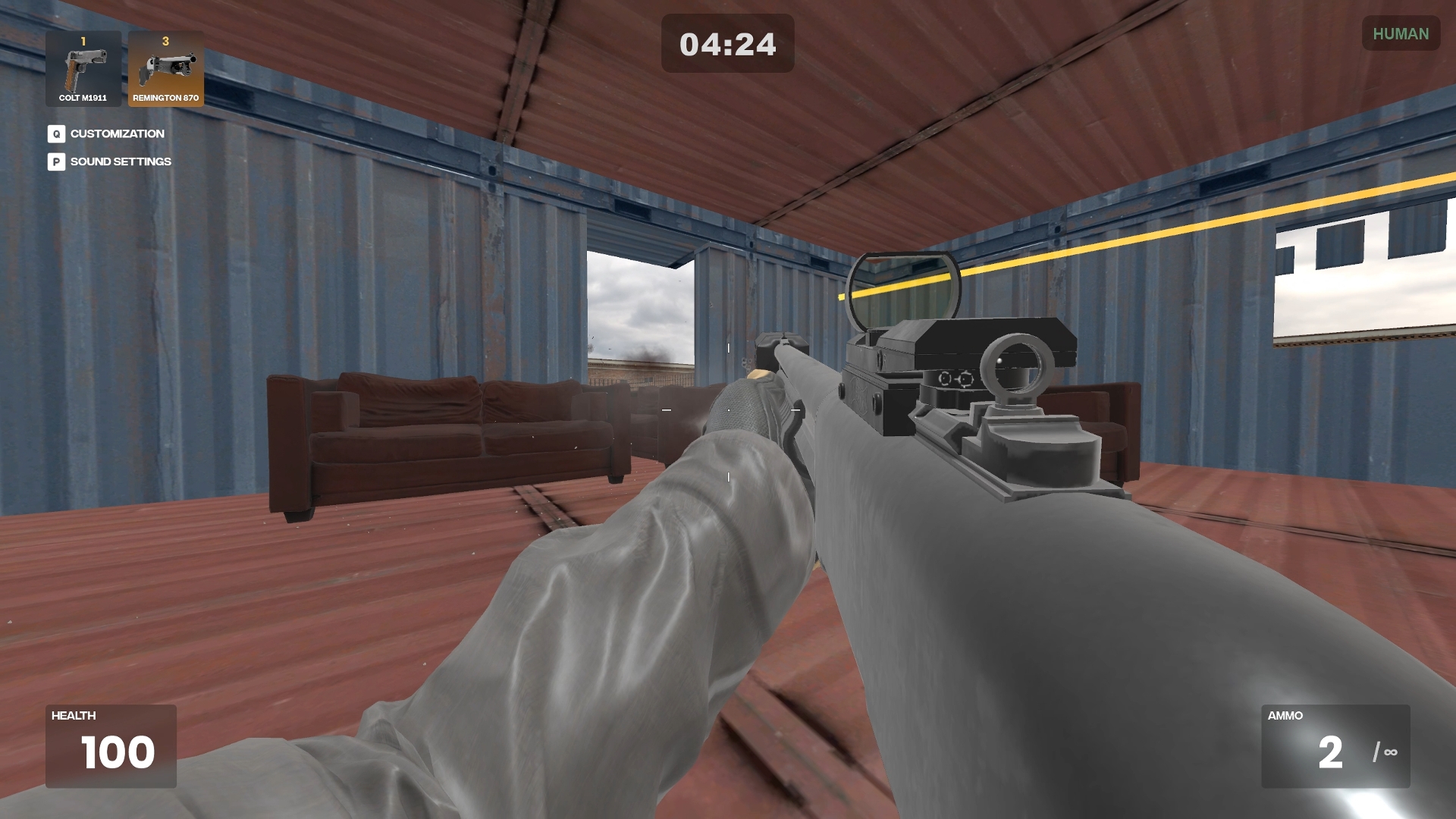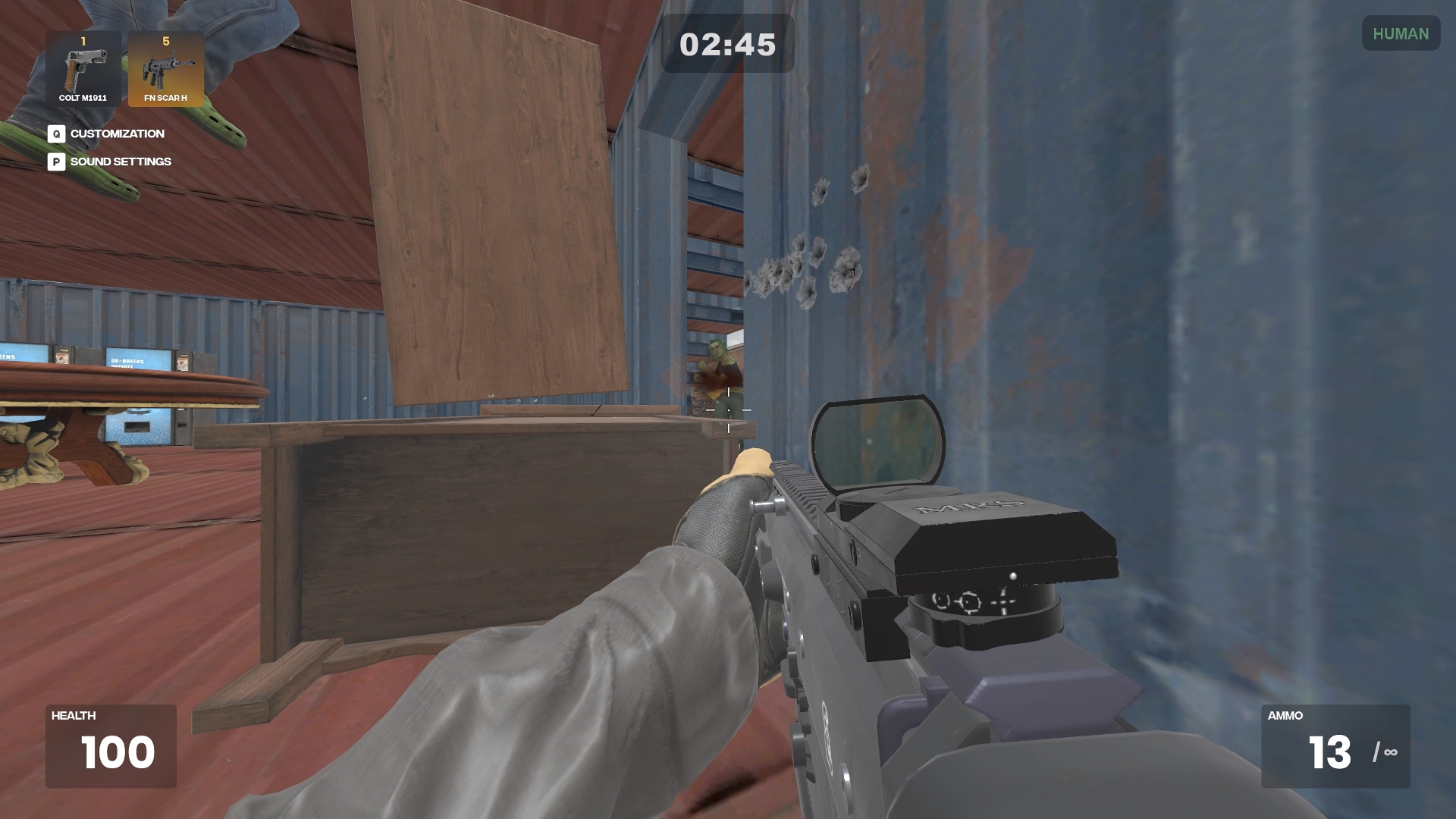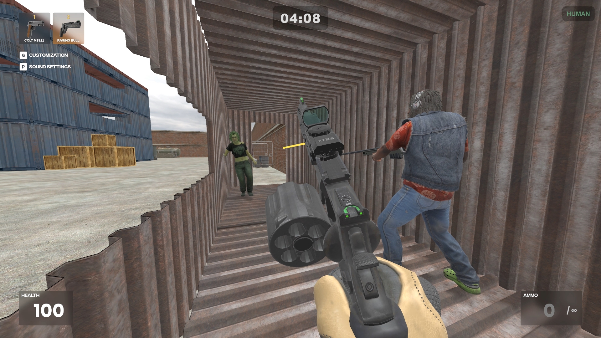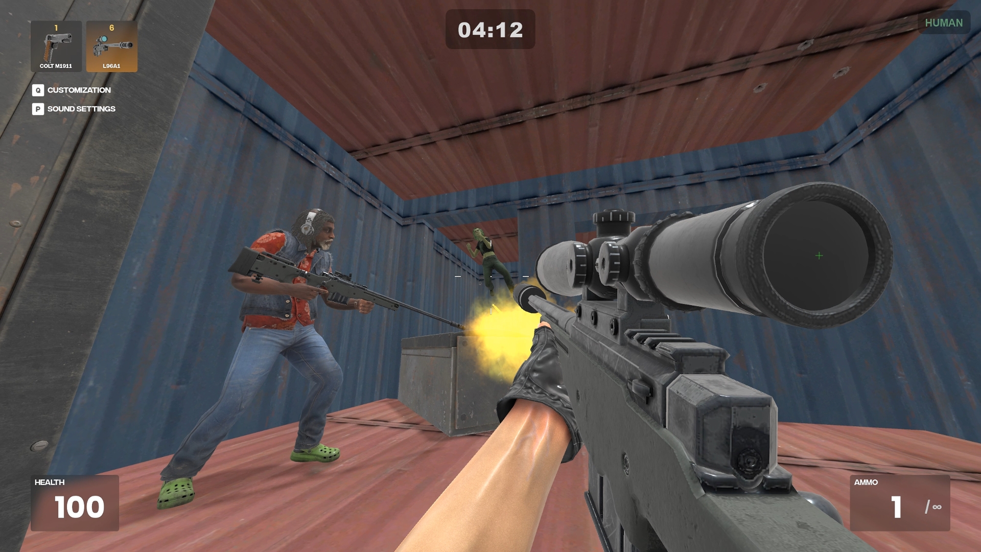At the start of the round, you have 20 seconds to take position. But trust no one. One of the humans is infected and will turn into a zombie when the timer ends. That infected player might be standing right next to you.